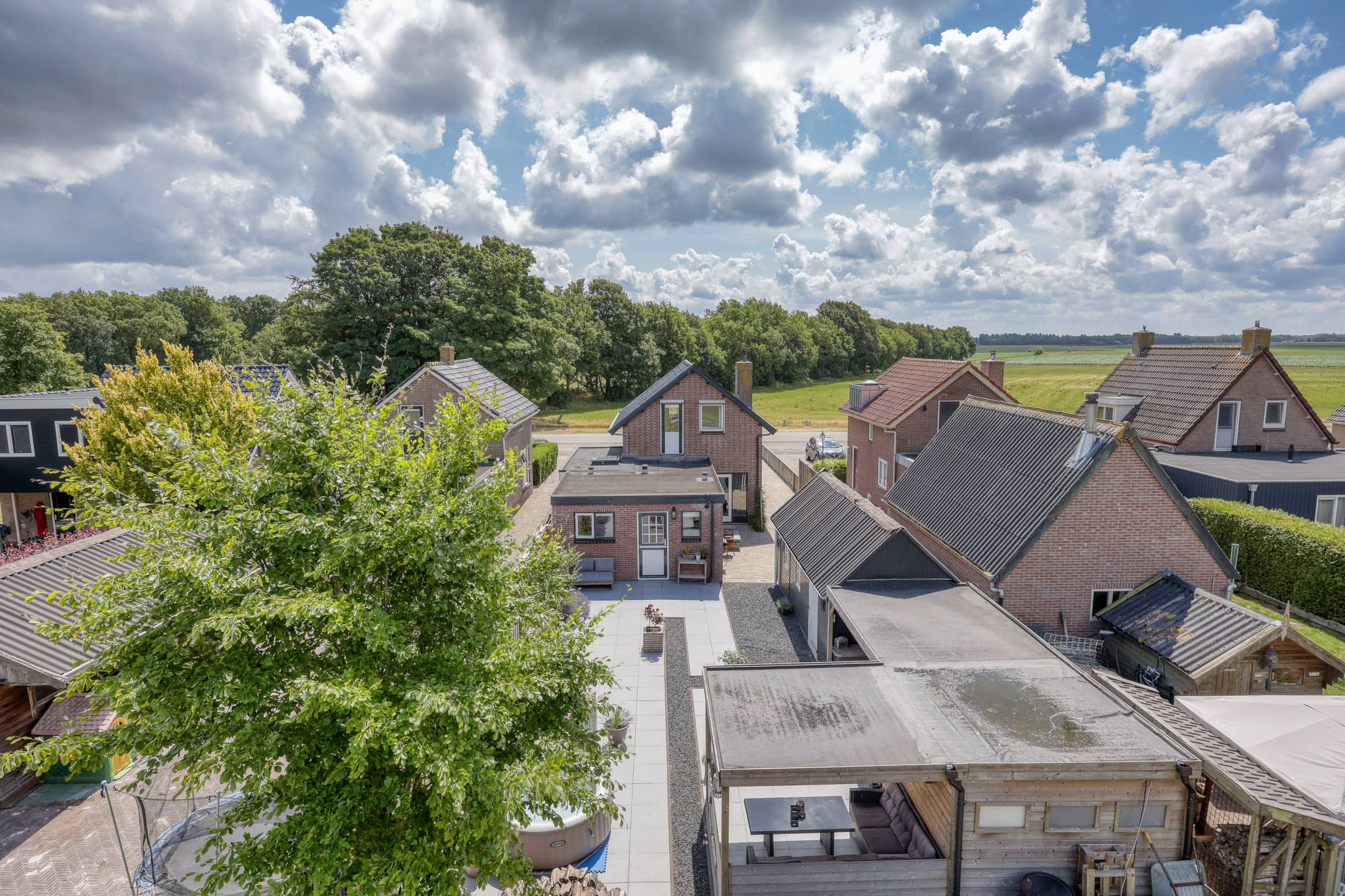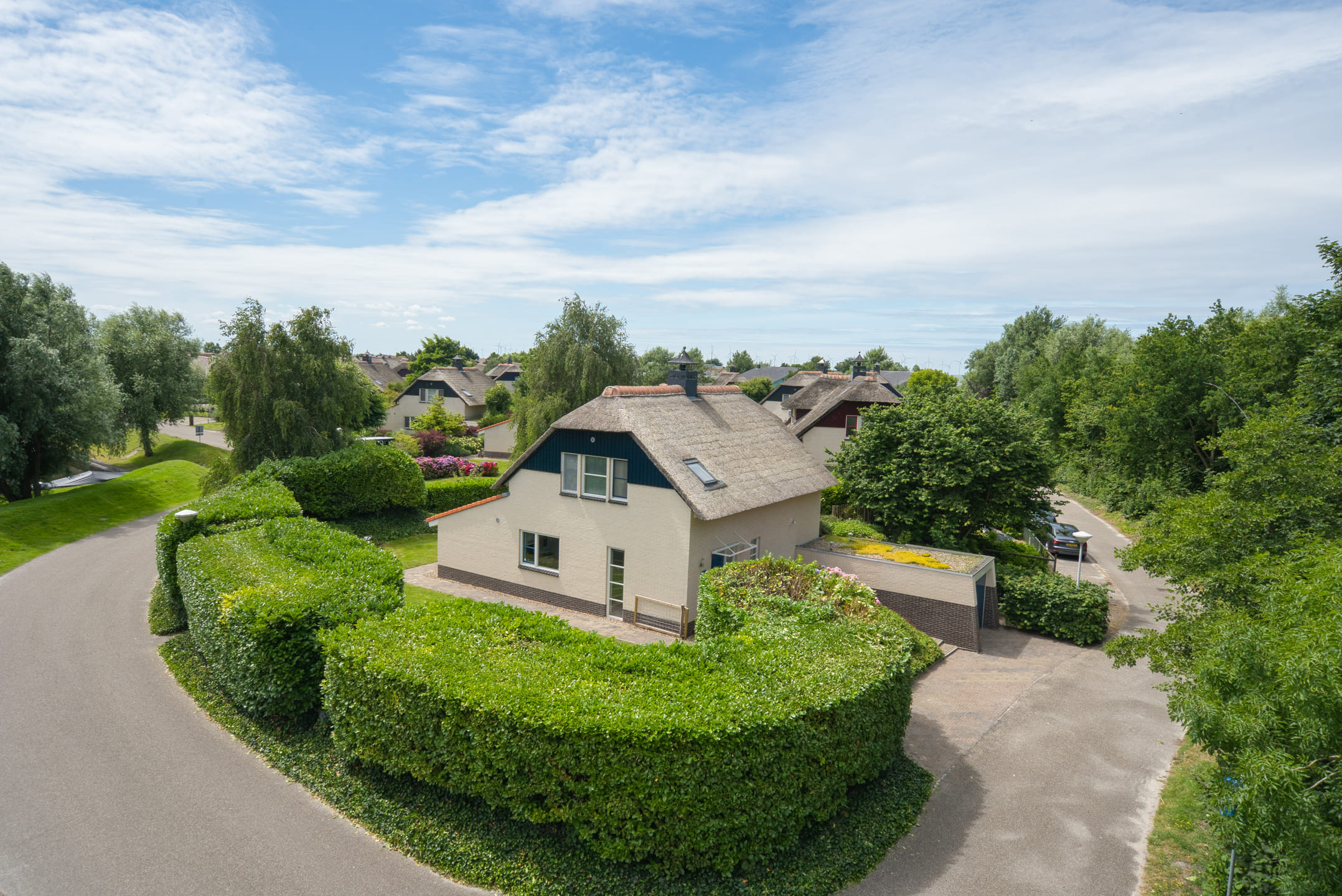 De woning en omgeving worden vanuit de lucht vastgelegd voor extra overzicht.
